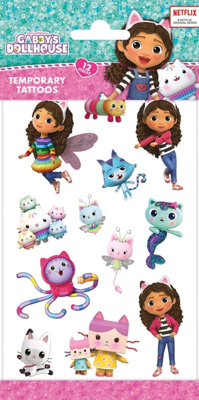 Tatuaże Koci Domek Gabi są przeznaczone dla dzieci i całkowicie zmywalne. Na blistrze znajduje się 12 różnych tatuaży z motywem kucyków.