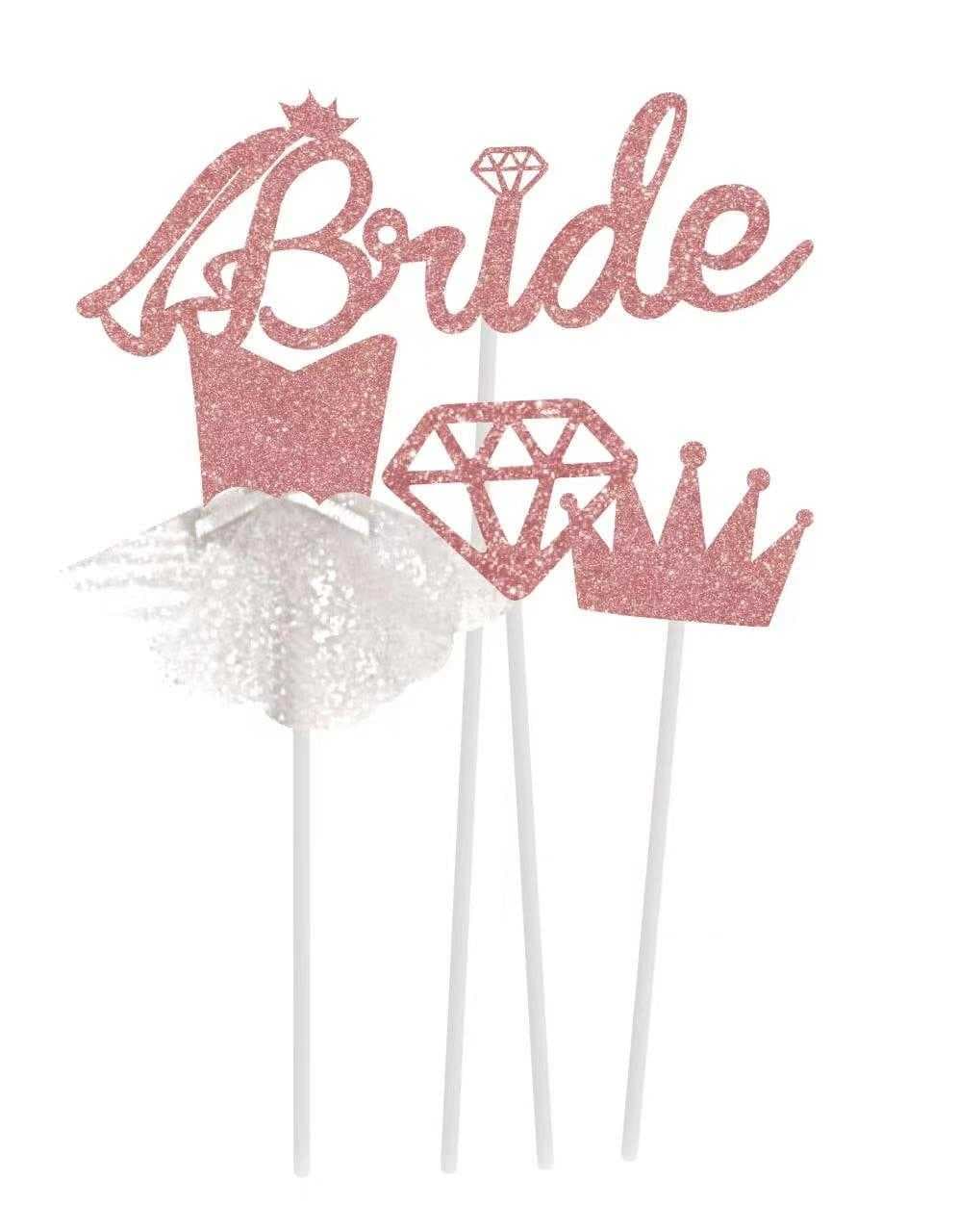 Toppery na wieczór panieński "Bride" brokatowe, różowe złoto