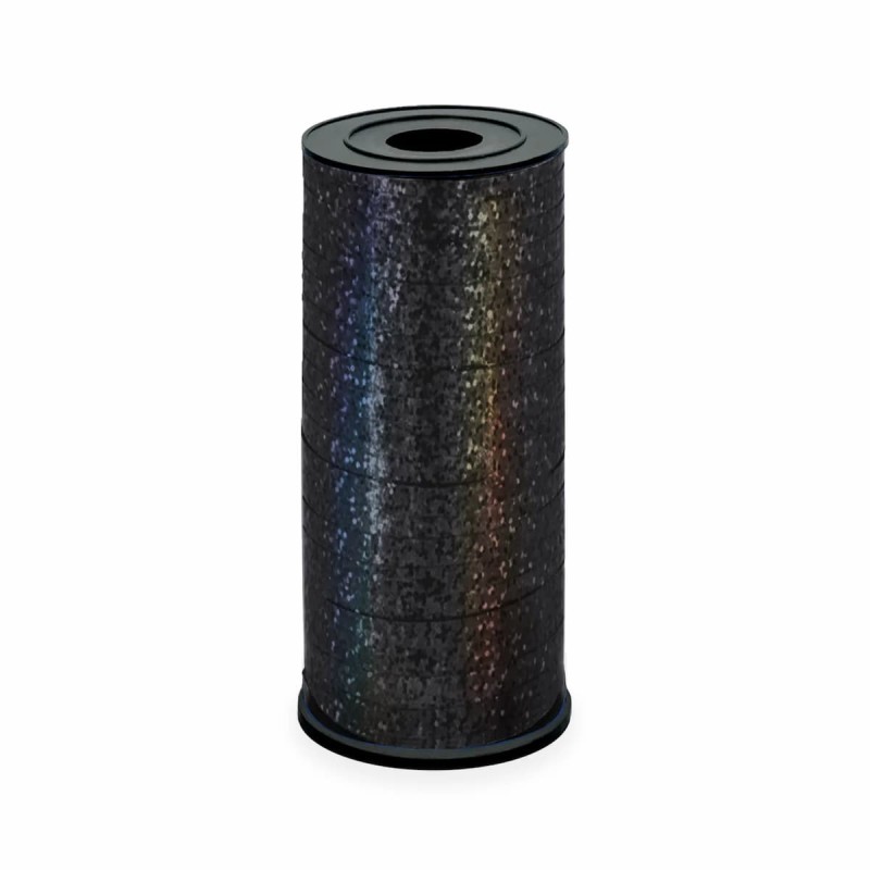 Wstążka tasiemka plastikowa do balonów czarna holograficzna 92 m