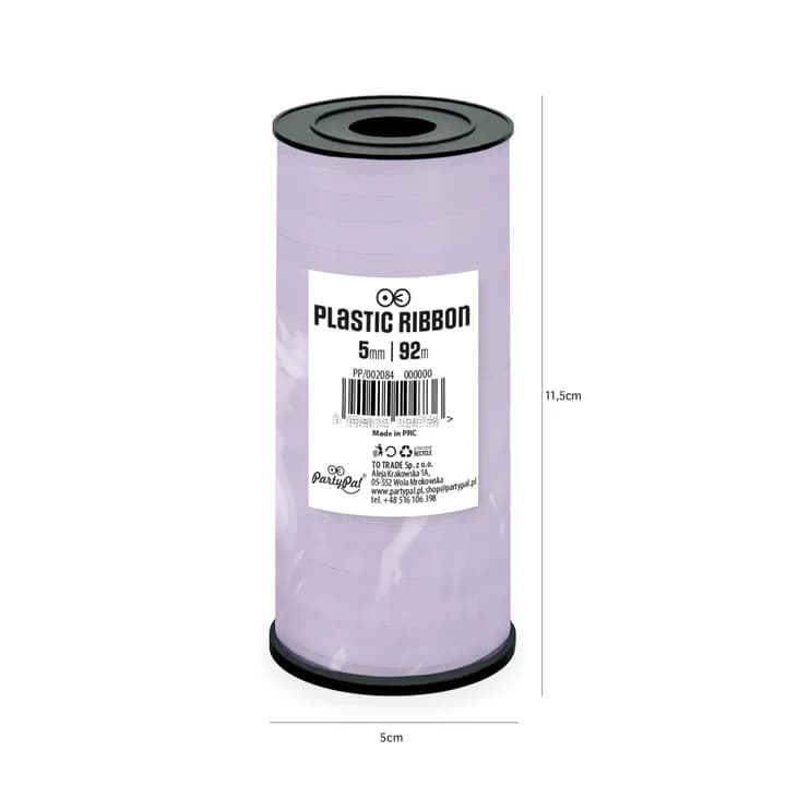 Wstążka plastikowa pastelowa fioletowa do balonów ma długość ok. 92 metry i szerokość ok. 5 mm.