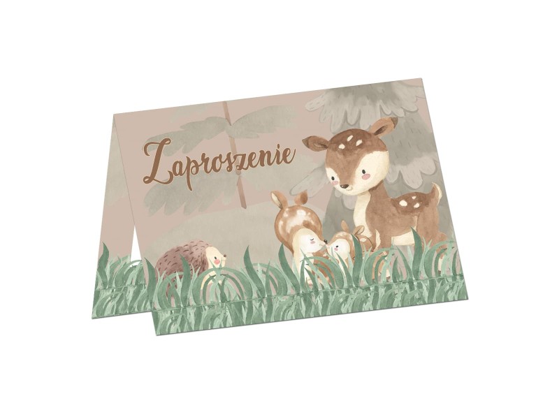 Wprowadź magię leśnego świata do swojego urodzinowego przyjęcia! Zaproszenia na urodziny z leśnymi zwierzątkami pozwolą idealnie nakreślić wszystkim gościom motyw nadchodzącej imprezy. Nadruk uroczych sarenek i jeżyka zachwyci każdego i sprawi, że na twarzach pojawią się ogromne uśmiechy.