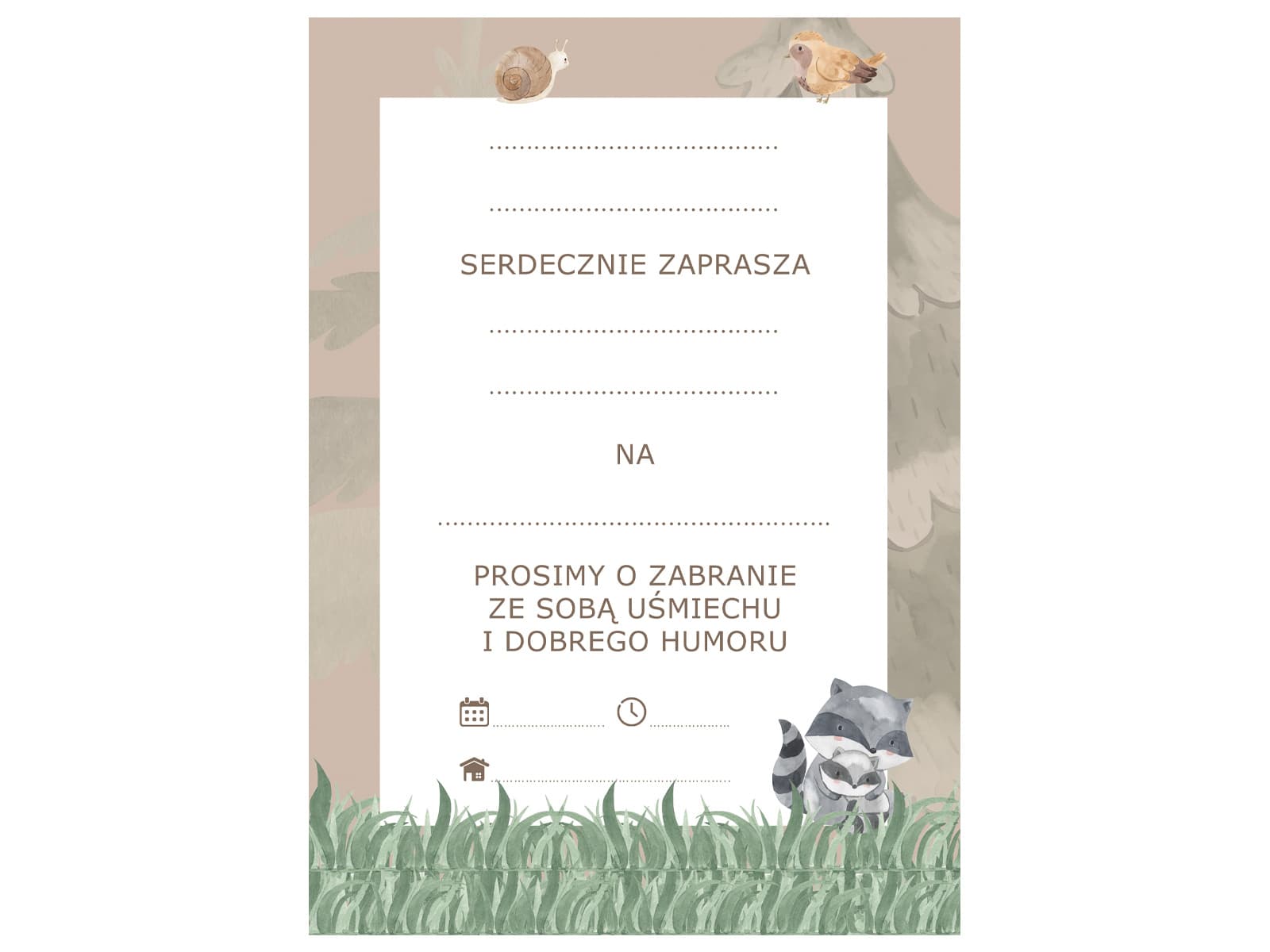 Zaproszenia urodzinowe leśne zwierzątka kraft, 6 szt.