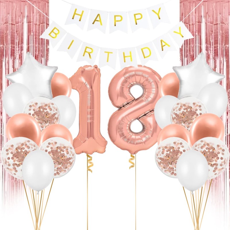 Zestaw balonowy rose gold na 18 urodziny zawiera:
