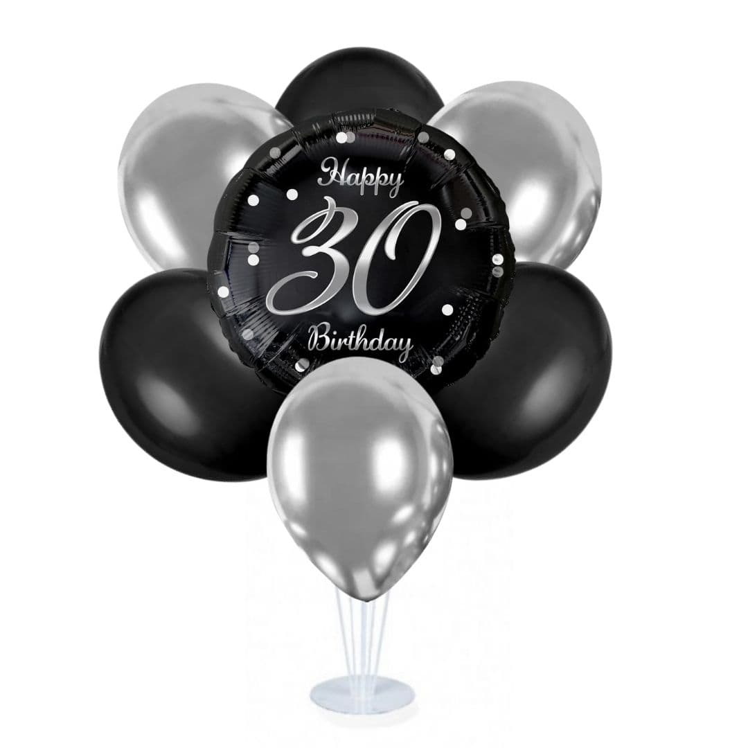 Zestaw balonów na stojaku 30 urodziny, srebrny