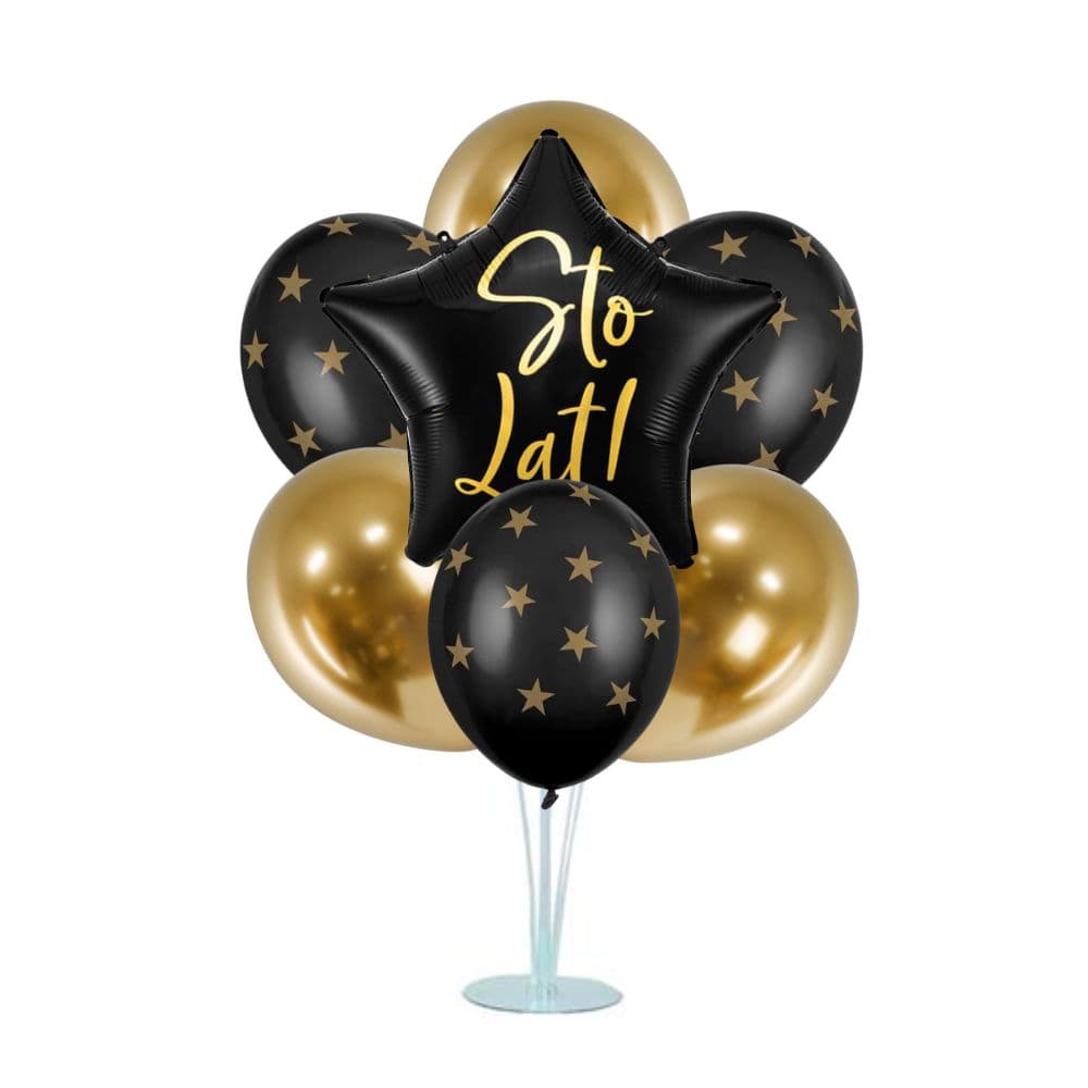 Zestaw balonów na stojaku - gwiazda Sto Lat czarna