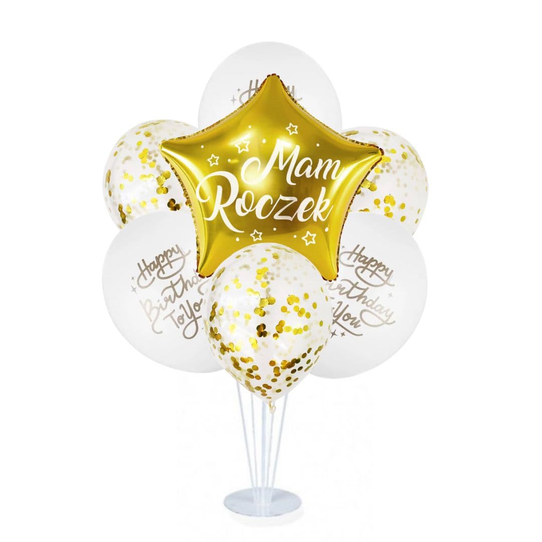 Zestaw balonów na stojaku Mam roczek złoty