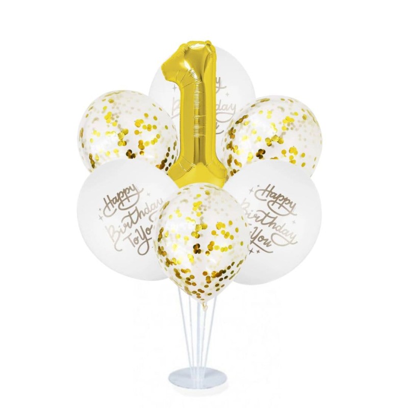 Zestaw balonów na stojaku Roczek złoty