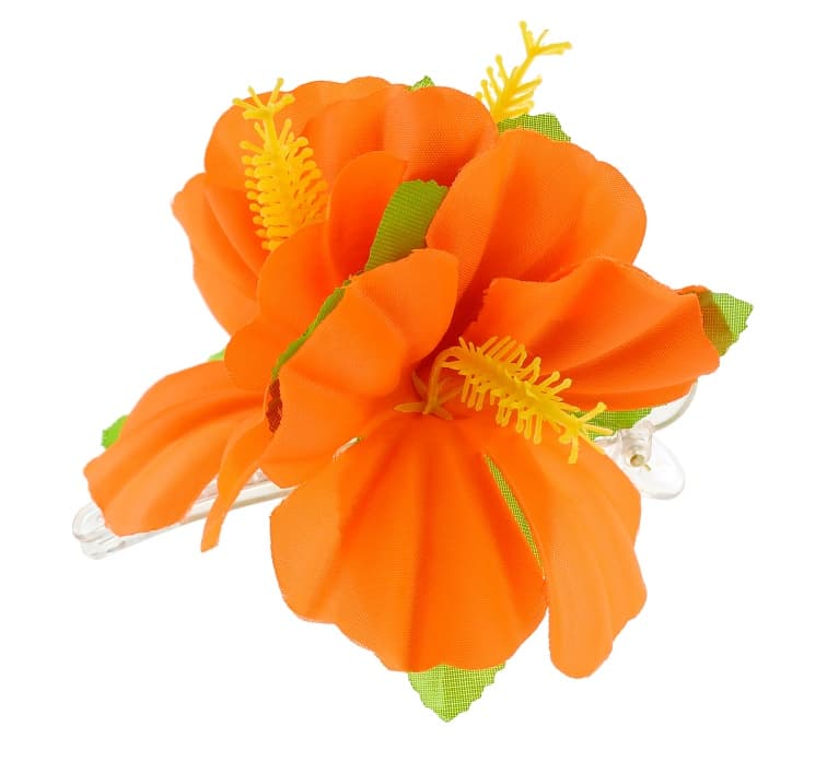 Ten hawajski zestaw w kolorze soczystej pomnarańczy to gwarancja, że nikt Cię nie przeoczy na imprezie. Spódniczka, naszyjnik i spinka w energetycznym odcieniu rozgrzeją atmosferę lepiej niż słońce na plaży. Czas na tropikalną eksplozję kolorów!