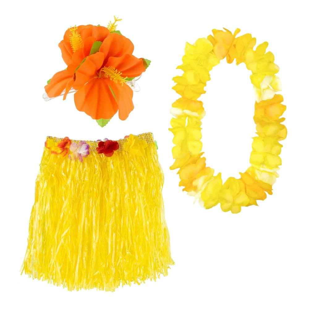 Wpadnij w tropikalny klimat dzięki słonecznemu zestawowi hawajskiemu w kolorze żółtym! Idealny na imprezy tematyczne, wieczory panieńskie i garden party. Spódniczka, naszyjnik i kwiatowa spinka sprawią, że poczujesz się jak na rajskiej plaży. Tańcz hula i ciesz się latem niezależnie od pogody.