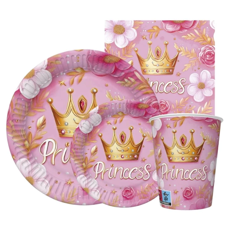Zestaw komplet zastawy Princess Korona Księżniczka - kubeczki, talerzyki, serwetki