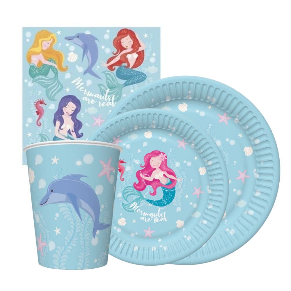 Zestaw komplet zastawy Syrenka - kubeczki, talerzyki, serwetki